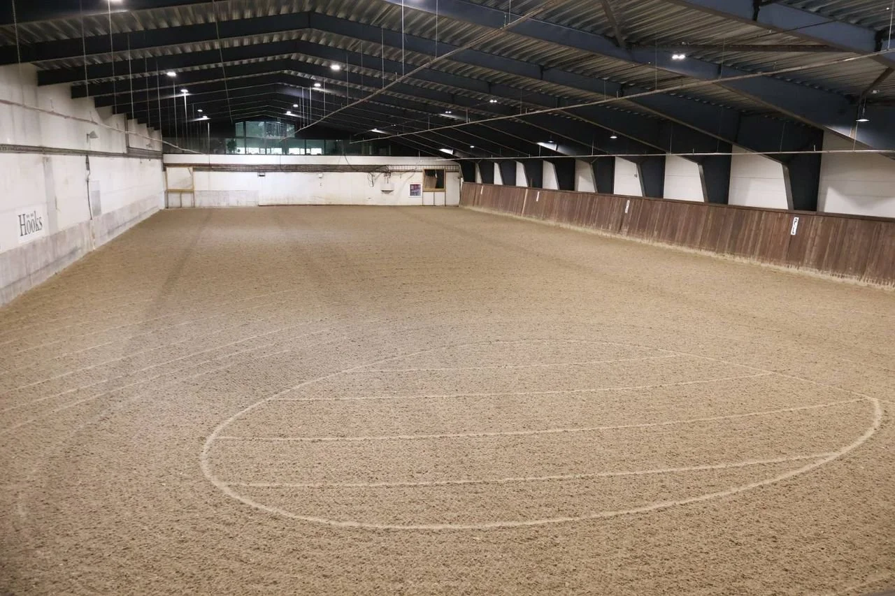 Innendørs isolert ridehus (23x64m), med speil.